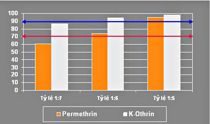 + % muỗi chết: 90 – 100%: Hóa chất có hiệu lực diệt tốt