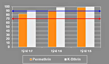 + Hóa chất K-Othrin 2EW: ở liều lượng pha 1:7, hóa chất K-Othrin có hiệu lực diệt muỗi Ae. aegypti trung bình, ở liều lượng pha 1:6 hóa chất có hiệu lực diệt muỗi tốt .