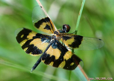 Với đôi cánh sặc sỡ và dáng bay yểu điệu, không ít người sẽ nhầm chuồn chuồn hoa (Rhyothemis variegata) với loài bướm. |