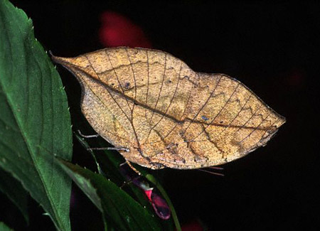 Khi đậu, thật khó để phân biệt giữa bướm lá cây (Kallima inachus) với một chiếc lá khô.