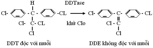 - Men DDT dehydrochorinase như là Glutathione S-transferase (GSTs) kháng DDT ở ruồi nhà Musca domestica, Anopheles và Aedes, men này khử clo của phân tử DDT, chuyển DDT thành DDE là hợp chất không có tính độc cho với côn trùng . Có 2 lớp GSTs và cả 2 đều có vai trò trong cơ chế kháng hóa chất của côn trùng. Ở Ae.aegypti có ít nhất 2 loại GST gia tăng trong kháng DDT, trong khi đó An.gambiae thì có rất nhiều GSTs khác nhau gia tăng, trong đó có vài loại thuộc GSTs lớp I.