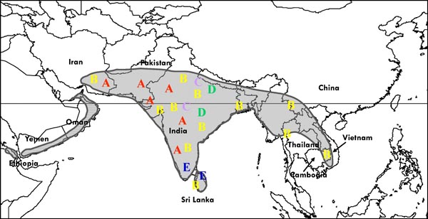 Hình 2: Phân bố của các loài trong phức hợp Culicifacies (Maguin và cs., 2008) |
