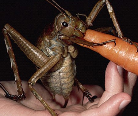 Dế weta ăn cà rốt ngon lành. (Nguồn: Daily Mail) |