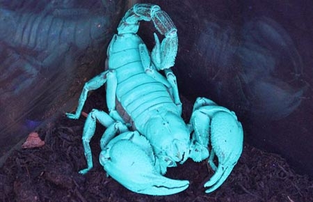 Các nhà khoa học đã đưa ra nhiều giả thuyết nhằm lý giải tại sao các con bọ cạp đen Heterometrus laoticus - một loài bọ cạp hung hãn được tìm thấy ở những vùng có than bùn ở Việt Nam và Lào, lại có khả năng phát ra ánh sáng màu xanh dương dưới tia cực tím.