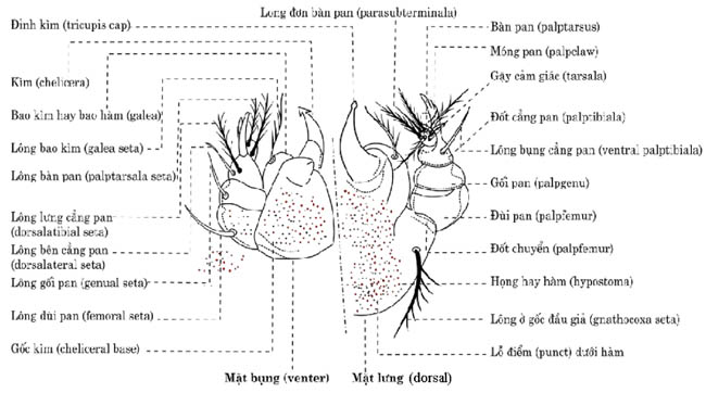 1  | Pan (palp)  | 18  | Đốt bàn (tarsum)  |