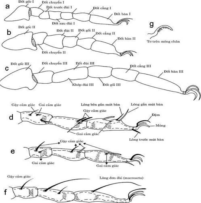 Hình 13: a-c: Các đốt của chân I đến chân III
