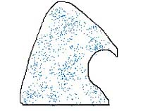 - Nhánh bất động của bộ phận sinh dục uốn cong về phía sau, ngọn vót lại có hình dáng như đầu chim đại bàng, trên nhánh bất động có 3 lông, lông giữa lớn nhất.