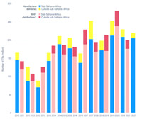 Các nhà sản xuất đã cung cấp khoảng 220 triệu ITNs cho các quốc gia lưu hành bệnh sốt rét vào năm 2021, ít hơn 10 triệu so với năm 2020 và ít hơn 34 triệu so với năm 2019 (Hình 2). Khoảng 94% tổng số ITNs do các nhà sản xuất cung cấp đã đến các quốc gia ở châu Phi cận Sahara. Trong số này, 46% là màn tẩm pyrethroid–piperonyl butoxide (PBO) và 9% là ITNs hoạt chất kép.Trong số các ITNs này, 176 triệu ITNs đã được phân phối ở châu Phi cận Sahara. Hơn một nửa tổng số màn được phân phối ở châu Phi cận Sahara được phân bổ ở 5 quốc gia: Cộng hòa Dân chủ Congo (22,6 triệu), Côte d'Ivoire (21,7 triệu),Kenya (17,9 triệu), Ghana (17,8 triệu) và Nigeria (16,4 triệu). Trong số 25,1 triệu màn được phân phối bên ngoài khu vực châu Phi cận Sahara, 90% được phân phối ở sáu quốc gia: Ấn Độ (16,2 triệu), Yemen (1,8 triệu), Papua New Guinea (1,6 triệu), Việt Nam (1,5 triệu), Bangladesh (0,9). triệu) và Campuchia (0,6 triệu).