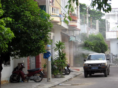 Phun hóa chất diệt muỗi bằng xe ô tô ở các tuyến đường lớn trên địa bàn TP Quy Nhơn (Ảnh:baobinhdinh online) |