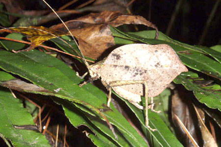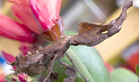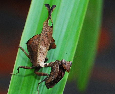 Loài bọ ngựa “lá mục” Deroplatys trigonodera khác hẳn họ hàng màu xanh lá của nó. Bề ngoài tiến hóa của nó trông như một chiếc lá mục rữa lẫn vào đất rừng nhiệt đới. Với cặp mắt kép lồ lộ và khả năng ngụy trang của mình, bọ ngựa “lá mục” thật sự là một kẻ săn mồi chuyên nghiệp và có phần an nhàn. Chúng ẩn nấp, rồi sau một cú phóng nhanh như chớp, đôi chân trước đầy gai của bọ ngựa “lá mục” sẽ cắt toạc những con mồi thiếu cảnh giác.