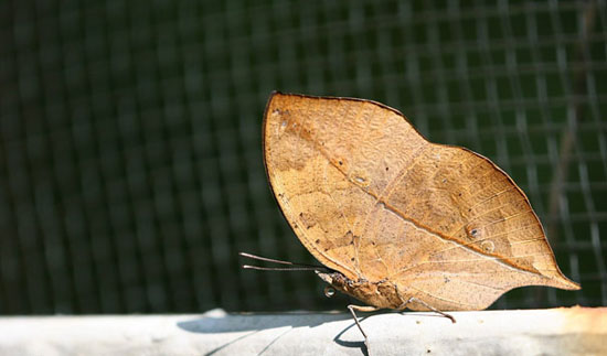 Loài bướm này đã hoàn thiện khả năng ngụy trang của mình. Khi chúng đậu khép cánh lại, mặt dưới cánh giống hệt một chiếc lá khô, với phần đuôi cánh sau kéo dài như cuống lá, một đường màu nâu kéo dài đến chóp cánh trước tạo thành hình gân lá. Khi gặp động chúng bay lên rất cao, nhanh và sâu vào các bụi rậm, do cánh của chúng rất giống với một chiếc lá khô nên rất khó có thể quan sát được.