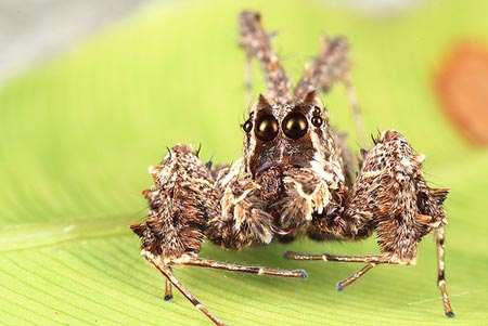 Nhện Portia, sát thủ chuyên nghiệpTrong các khu rừng nhiệt đới, không có loài nào thông mình hơn loài nhện Portia, một chuyên gia về chiến lược và là bậc thầy về ngụy trang. Loài nhện Portia thực sự là một sát thủ chuyên nghiệp. Portia còn là một chuyên gia ám sát. Tám con mắt có thể có thể nhìn rõ mọi thứ trong bất cứ tình huống nào, làm cho Portia càng trở lên nguy hiểm hơn. Điều khá đặc biệt là loài nhện Portia rất thích ăn thịt các con nhện khác.