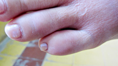 Ngón chân út , áp út và bắp cẳng chân của chị C.T. 38 tuổi ở phường Thuận Hòa bị bọ xít đốt máu gây viêm sưng, nóng, đỏ và đau (Ảnh: Nguyễn Võ Hinh) |