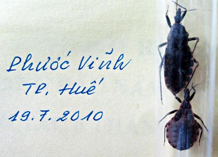 Bọ xít hút no máu bắt được tại phường Phước Vĩnh, Huế. (Ảnh: Nguyễn Võ Hinh) |