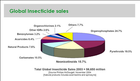 Trong nhiều thập kỷ qua, các hợp chất diệt côn trùng tổng hợp khác nhau đã được sử dụng rộng rãi ở các cơ sở tư nhân, các nhà kinh doanh nông nghiệp và các chương trình quốc gia về kiểm soát véc tơ đối với sức khỏe cộng đồng ở Thái Lan. Phần lớn các hợp chất chính được sử dụng nhiều với số lượng lớn là sự kết hợp xây dựng dựa trên nhóm hợp chất pyrethroid (Bảng 1). Pyrethroid tổng hợp đã trở thành nhóm hóa chất được sử dụng phổ biến nhất trong y tế cộng đồng là do độc tính thấp đối với động vật có vú nhưng có độc tính cao ở động vật không xương sống, kết quả chúng được giết và ngã gục nhanh. Hầu hết các hợp chất nhóm pyrethroid đã được sử dụng để kiểm soát côn trùng gây hại chẳng hạn như gián, kiến, bọ xít và muỗi. So với pyrethroids một vài hóa chất tương đối ít ở nhóm carbamate và phốt phát hữu cơ vẫn có sẵn trên thị trường Thái Lan. Ví dụ, số lượng pyrethroid được sử dụng để kiểm soát sốt rét và sốt xuất huyết trong năm 2007 (kể cả màn ngủ tẩm hóa chất) xấp xỉ khoảng 1.127 tấn trong khi đó phốt phát hữu cơ và carbamate hầu như không sử dụng.
