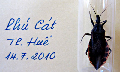 Bọ xít nghi hút máu bắt được tại phường Phú Cát, TP Huế 14/7/2010 |