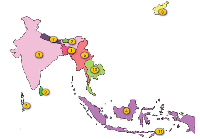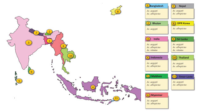 Tổ chức Y tế thế giới (TCYTTG) phân chia các quốc gia trên toàn cầu thành 6 khu vực, trong đó khu vực Đông và Nam Á có 11 thành viên với gần 2 tỷ người gồm Bangladesh, Bhutan, Triều Tiên, Ấn Độ, Indonesia, Maldives, Myanmar, Nepal, Sri Lanka, Thailand, Đông Timor, riêng Việt Nam nằm ở khu vực Tây Thái Bình Dương. Đây là một trong những khu vực lưu hành nhiều bệnh do muỗi truyền và cũng là trung tâm y tế toàn cầu.