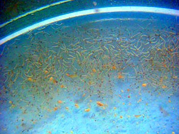 Xác lăng quăng chết sau khi tiếp xúc với chế phẩm vi sinh vật từ vi khuẩn Bacillus thuringiensis subsp. israelensis serotype H14. Ảnh: H.Nhung ( nguồn ảnh : vietnamnet.vn) |