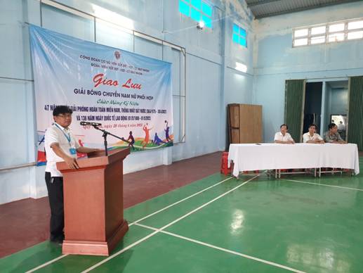 TS.Hồ Đắc Thoàn-Chủ tịch Công đoàn cơ sở Viện, Trưởng Ban Tổ chức phát biểu khai mạc Giao lưu bóng chuyền nam-nữ phối hợp