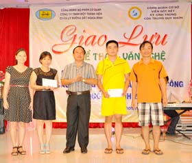 BS. Trần Thanh Tâm trao giải nhất bống đá cho Viện Sốt rét -Ký sinh trùng-Côn trùng Quy Nhơn |