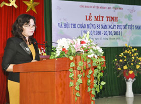 TS. Ngô Thị Hương đọc diễn văn ôn lại truyền thống hào hùng của Phụ nữ Việt Nam và thành tích hoạt động của Nữ công Viện | Đồng chí Nguyễn Xuân Lãng phát biểu chào mừng |