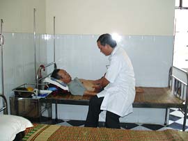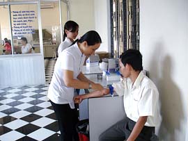 Cán bộ phòng Khám của Viện đang | khám bệnh và lấy máu xét nghiệm |