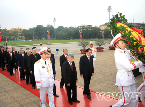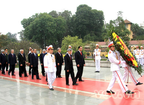 Trước buổi Lễ, các vị lãnh đạo Đảng, Nhà nước và Chính phủ đã vào Lăng viếng Chủ tịch Hồ Chí Minh... (ảnh:vov.vn) |