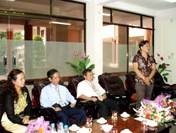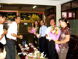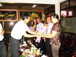 Ths. Lê Ngọc Linh-Bí thưĐảng ủy-Phó Viện trưởng thay mặt cho Đảng ủy, lãnh đạo Viện phát biểu chúc mừng 3 gia đình và đánh giá rất cao về sựphấn đấu vươn lên của nhiều gia đình trí thức và CBCNVCLĐ trong cơ quan đã góp phần tạo nên nhiều thành tích chung cho đơn vị; đặc biệt trong 3 gia đình đã được Hội nghị Công đoàn Viện suy tôn hết sức xứng đáng và là tấm gương cho nhiều gia đình khác vươn lên học tập; đồng thời mong 3 gia đình tiếp tục phát huy truyền thống của mình gặt hái nhiều thành công hơn nữa trong công tác và cuộc sống. Thay mặt Đảng ủy, cơ quan và các tổ chức đoàn thể, Ths. Lê Ngọc Linh đã tặng quà cho các gia đình và những bó hoa tươi thắm nhất. |  |