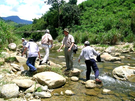 Cán bộ Viện đi bắt muỗi tại thực địa |