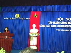 Thực hiện chương trình đào tạo, bồi dưỡng cán bộ công đoàn của Tổng liên đoàn lao động Việt Nam và chương trình công tác của Công đoàn Y tế Việt Nam; trong hai ngày 27-28/2008 tại thành phố Đà Nẵng, Công đoàn Y tế Việt Nam phối hợp với Tổng cục dân số kế hoạch hoá gia đình, Cục phòng chống HIV/AIDS tổ chức tập huấn nghiệp vụ công tác công đoàn, chương trình Y tế quốc gia và triển khai nghị quyết Đại hội XI công đoàn Y tế Việt Nam cho cán bộ công đoàn khu vực miền Trung.