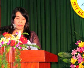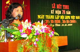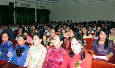 CN.Trần Thị Dung với Báo cáo công tác tổng kết nữ công năm 2009 | Các chị em phụ nữ có mặt đầy đủ trong Lễ kỷ niệm |