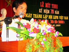 TS. Ngô Thị Hương-Trưởng Ban nữ công giới thiệu về sự phát triển và trưởng thành của Hội liên hiệp phụ nữ Việt Nam và phát động phong trào thi đua trong nữ công chức và học sinh | TS. Triệu Nguyên Trung-Viện trưởng phát biểu tại lễ Kỷ niệm |