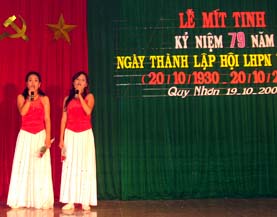 Hòa chung trong không khí sôi nổi của cả nước kỷ niệm 79 năm ngày thành lập Hội liên hiệp phụ nữ Việt Nam (20/10/1930-20/10/2009), Phụ nữ Viện Sốt rét-KST-CT Quy Nhơn đã long trọng tổ chức Lễ mít tinh chào mừng và giao lưu với nhiều nội dung phong phú như thuyết trình về chủ đề “phụ nữ học tập và làm theo gương đạo đức Hồ Chí Minh”, hội diễn văn nghệ…