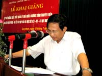Hiệu trưởng Nguyễn Cảnh Huệ phát biểu khai mạc lớp học |