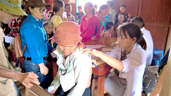 Bác sỹ trẻ Thanh Quyên đang thăm khám cho các cụ già