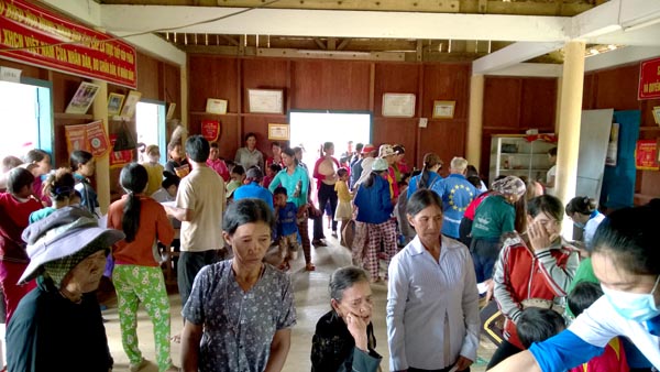 Quang cảnh trong buổi khám bệnh tình nguyện tại nhà cộng đồng