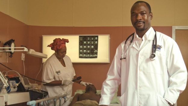 Ts Manirou từ công ty khai thác mỏ Rangdgold Resources xét nghiệm kiểm tra các nhân viên và dân làng để phát hiện một số bệnh. (ảnh: RANDGOLD RESOURCES)