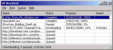 Với dung lượng cực kỳ nhỏ gọn, chỉ 180KB, Wackget là chương trình quản lý download nhỏ gọn nhất dành cho Windows. Với giao diện quen thuộc, cực kỳ dễ sử dụng và hầu như không ảnh hưởng gì đến tài nguyên của hệ thống.
