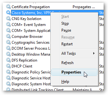 Phần khó khăn ở đây đó là chúng ta phải chọn đúng những dịch vụ để hoãn (delay). Bạn chỉ nên hoãn những dịch vụ đến từ các ứng dụng bạn cài đặt thêm, chẳng hạn như dịch vụ của ứng dụng mạng, dịch vụ của máy in,… Tuyệt đối không được hoãn các dịch vụ của Windows vì như vậy bạn có thể sẽ không khởi động máy được. Khi đã xác định được dịch vụ cần hoãn, nhấp phải chuột, chọn Properties.
