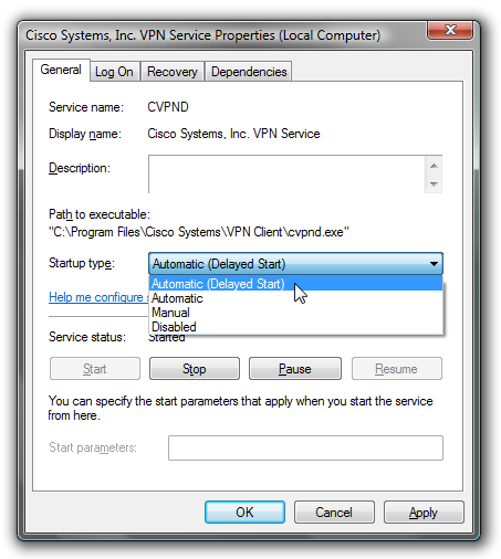 Trong hộp thoại hiện ra, bạn chuyển mục Startup Type thành Automatic (Delayed Start). Nhấn OK để kết thúc.