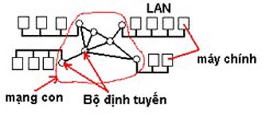 Hầu hết các WAN bao gồm nhiều đường cáp hay là đường dây điện thoại, mỗi đường dây như vậy nối với một cặp bộ định tuyến. Nếu hai bộ định tuyến không nối chung đường dây thì chúng sẽ liên lạc nhau bằng cách gián tiếp qua nhiều bộ định truyến trung gian khác. Khi bộ định tuyến nhận được một gói dữ liệu thì nó sẽ chứa gói này cho đến khi đường dây ra cần cho gói đó được trống thì nó sẽ chuyển gói đó đi. Trường hợp này ta gọi là nguyên lý mạng con điểm nối điểm, hay nguyên lý mạng con lưu trữ và chuyển tiếp (store-and-forward), hay nguyên lý mạng con nối chuyển gói.
