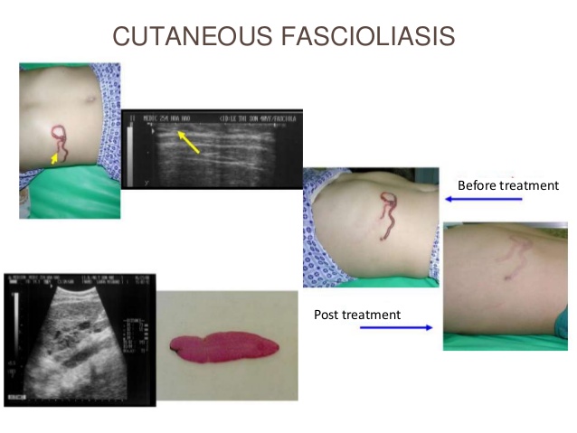 100.Xuan le T, Hung NT, Waikagul J. Cutaneous fascioliasis: a case report in Vietnam. Am J Trop Med Hyg. 2005 May. 72(5):508-9. [Medline]. [Full Text].