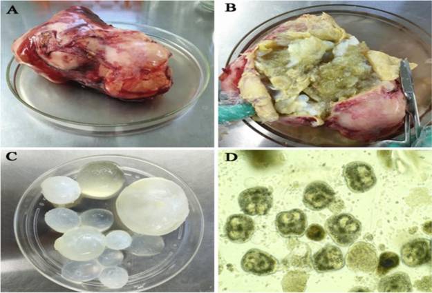 Hình 5. Sán và tổn thương do sán dảiEchinococcus sp. |Nguồn: Lancet