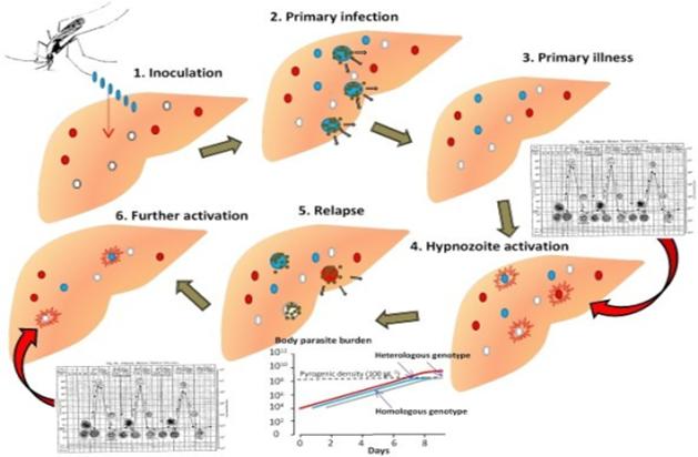 18.Chen N, Auliff A, Rieckmann K, Gatton M, Cheng Q et al., (2007). Relapse of Plasmodium vivax infection result from clonal hypnozoites activated at predeterminated intervals. Journal of infectious diseases, 195:934-941.