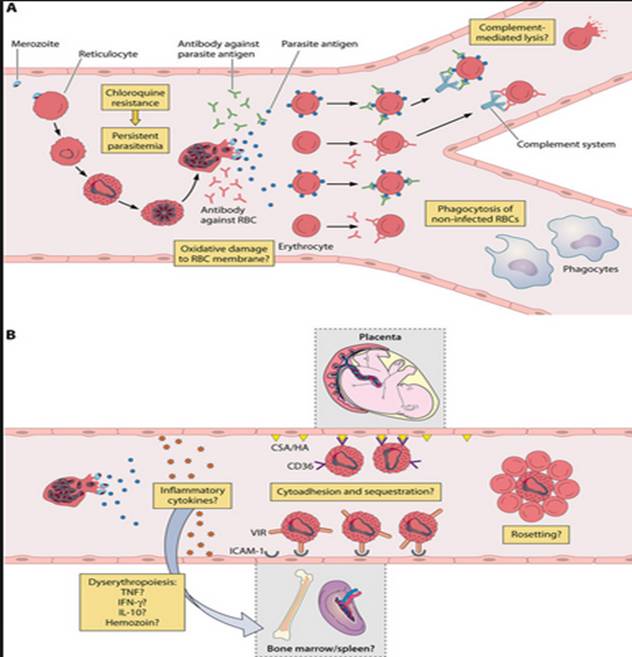 Malaria: mechanisms of erythrocytic infection and pathological correlates of severe disease.