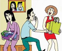 Bồ thích tới cửa hàng, vợ muốn cùng ta về nhà ngoại; Bồ muốn ta mặc quần áo đẹp, vợ muốn ta mặc quần áo bền; Bồ thích mua quà, vợ muốn mua sắm đồ dùng; Bồ thích mua hàng hiệu, vợ muốn mua đồ hạ giá; Bồ thích đi du lịch xa, vợ muốn đi du lịch gần; Bồ khó chịu khi ta giấu bạn, vợ khó chịu khi thấy bạn của chồng; Bồ dọa cưới, vợ đòi ly dị; Bồ chê ta tắm một mình, vợ chê ta lười tắm; Bồ thích đi xem phim, vợ thích đi chợ; Bồ lục ví mình cho ta thấy, vợ lục ví xem ta có bao nhiêu; Bồ giả vờ tin, vợ không tin ta là người đàn ông vĩ đại; Ngày lễ tình yêu đi với vợ, không được đi bồ; Bồ khen ta đẹp trai, vợ chê ta ốm yếu; Bồ đưa ta đi uống rượu, vợ đưa ta đi uống thuốc; Bồ hay nói về tương lai, vợ hay nói về quá khứ; Bồ cho là lãng mạn, vợ cho là điên khi cùng nhau chạy dưới mưa; Bồ thích dậy muộn, vợ thích dậy sớm; Bồ thích lấy áo ta mặc, vợ thích lấy áo ta đi giặt; Bồ nói là vui, vợ nói là đông khi cùng ta đi dạo phố; Bồ mang hoa, vợ mang cơm khi ta bị bệnh;   Bồ cùng say, còn vợ nhăn nhó khi ta say; Bồ hay kể đêm đêm có anh chàng đi qua, vợ hay kể đêm đêm có trộm rình mò; Ta gọi vợ là bà xã, gọi bồ là em yêu; Ta khen vợ trẻ, khen bồ đẹp; Quay lưng khi đi với bồ mà nhìn thấy vợ, Gượng gạo khi đi với vợ mà nhìn thấy bồ; Điện thoại bảo vợ: “Nhớ khóa cửa nhà”, điện thoại bảo bồ: “Nhớ đi ngủ sớm”; Phóng khoáng tiêu tiền với bồ, tiết kiệm chi ly với vợ; Bồ thích chó mèo con, vợ thích vịt gà làm sẵn; Bồ khóc khi thấy cảnh chia tay, vợ khóc khi thấy cảnh đói khổ khi xem phim; Bồ hay nói về tình yêu, vợ hay nói về cuộc sống; Bồ thích văn hoa, vợ thích thực tế; Bồ nhí nhảnh, vợ nghiêm nghị; Bồ nói yêu ta do ta hấp dẫn, vợ nói yêu ta vì ta đứng đắn; kỷ niệm với ngày làm quen, kỷ niệm với vợ ngày cưới; Ta thì thầm với bồ: “Anh yêu em” và hô to với vợ: “Anh yêu gia đình”.   |
