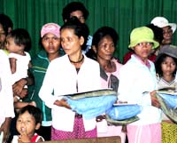 Hai chuyên gia đã làm việc với BS. Lê Thị Thoa, Trưởng phòng y tế huyện, BS. Đặng Văn Lũy-Phó Giám đốc Trung tâm y tế huyện Khánh Vĩnh để nắm bắt những thông tin liên quan đến việc phối hợp giữa các bên liên quan trong PCSR nói chung và thực hiện Dự án nói riêng. Chiều cùng ngày đoàn đã tham dự buổi giao ban hàng tháng với nhân viên tham gia thực hiện Dự án tuyến huyện và tuyến cơ sở (y tế xã và y tế thôn bản). Sau buổi giao ban, hai chuyên gia đã trao 100 chiếc màn , 40 chiếc võng và bọc võng tẩm hoá chất cho người đi rừng và ngủ rẫy 2 xã Khánh Trung và Khánh Nam. Ban QLDA Viện Sốt rét KST CT Quy Nhơn cũng đã trao cho 2 kính hiển vi cho 2 Trạm y tế xã này.