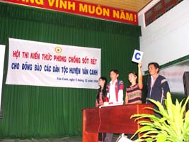 Huyện Vân Canh là huyện miền núi thuộc tỉnh Bình Định có sốt rét lưu hành nặng và là thí điểm nghiên cứu sốt rét của Viện Sốt rét-Ký sinh trùng-Côn trùng Quy Nhơn từ năm 1977 đến nay, những năm gần đây bệnh sốt rét có xu hướng giảm nhưng nguy cơ xảy dịch sốt rét vẫn còn cao, đặc biệt là vùng có đồng bào dân tộc thiểu số sinh sống và các đối tượng đi rừng, ngủ rẫy hoặc thường xuyên giao lưu vào vùng sốt rét lưu hành. Hội thi kiến thức phòng chống sốt rét ở đây là một trong những hoạt động truyền thông giáo dục phòng chống sốt rét nằm trong Đề án phòng chống các bệnh nhiệt đới do véc tơ truyền đang được Khoa Côn trùng của Viện thực hiện tại điểm nghiên cứu Vân Canh. Hai đội được lựa chọn tham gia Hội thi đại diện cho các dân tộc thiểu số (Chăm, Ba Na, Thái) thuộc hai xã Canh Hòa và Canh Thuận đã được chuẩn bị và tập dượt chu đáo ít nhất là một tháng trước khi Hội thi được chính thức tiến hành.