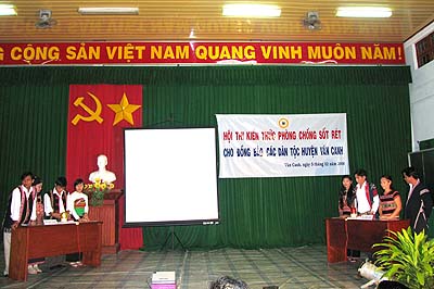Từ trước đến nay rất nhiều hình thức truyền thông đã được Dự án quốc gia phòng chống sốt rét áp dụng như pano, áp phích, tranh lật, tranh lịch, tờ rơi, băng hình, băng tiếng, cổ động, thông tin trên báo chí, phát thanh trên loa đài, truyền hình trực tuyến, tuyên truyền trực tiếp cho người dân… đã góp phần tích cực hạ thấp tỷ lệ bệnh sốt rét ở cộng đồng. Hội thi kiến thức phòng chống sốt rét cũng là một trong những hình thức truyền thông mới được áp dụng thông qua Dự án phòng chống sốt rét cho đồng bào các dân tộc thiểu số thuộc Tiểu vùng sông Mê Công do Ngân hàng Châu Á (ADB) tài trợ, trong đó Việt Nam thực hiện tại huyện Khánh Vĩnh, tỉnh Khánh Hòa (2005-2007) đã đem lại nhiều hiệu quả làm thay đổi nhận thức cũng như hành vi phòng chống sốt rét của cộng đồng. Từ những kinh nghiệm và kết quả có được, hình thức truyền thông này đã được áp dụng thành công tại các huyện trọng điểm sốt rét như A Lưới (tỉnh Thừa Thiên-Huế), Nam Trà My (tỉnh Quảng Nam), Hàm Thuận Bắc (tỉnh Bình Thuận) và Vân Canh (tỉnh Bình Định).