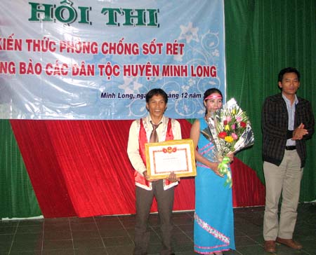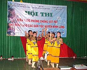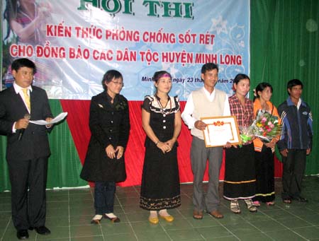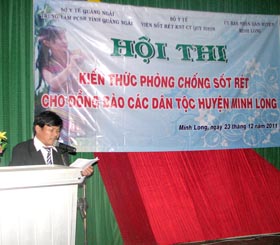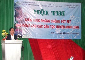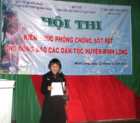 Minh Long là một huyện sốt rét lưu hành thuộc tỉnh Quảng Ngãi, đây là địa bàn sinh sống của nhiều dân tộc anh em, chủ yếu là dân tộc H’rê và người Kinh. Với đặc điểm địa hình rừng núi, nhiều khe suối, khí hậu thời tiết nóng ẩm tạo điều kiện cho trung gian truyền bệnh sốt rét phát triển. Trong những năm gần đây bệnh sốt rét có xu hướng giảm nhưng nguy cơ xảy dịch sốt rét vẫn còn cao, đặc biệt là vùng sâu, xa vùng có đồng bào dân tộc thiểu số sinh sống và các đối tượng đi rừng, ngủ rẫy. Nhằm nâng cao kiến thức, thái độ, thực hành phòng chống bệnh sốt rét cho người sống trong vùng sốt rét lưu hành nặng. Vào ngày 23/12/2011, được sự tài trợ và chỉ đạo của Viện Sốt rét-Ký sinh trùng-Côn trùng Quy Nhơn, Trung tâm phòng chống sốt rét tỉnh Quảng Ngãi phối hợp với Trung tâm y tế huyện Minh Long tổ chức Hội thi Kiến thức phòng chống bệnh sốt rét cho đồng bào dân tộc thiểu số huyện Minh Long.